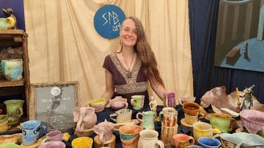 Ein Name ist Sophie. Ich habe noch mehr Namen. Ich bin die, die auch Märchentassen zaubert. Ich bin die, die auch das Wasser heilt. Ich bin auch die, die die Erde heilt. Die, mit der Blume des Lebens im Haar und in den Tassen. Geboren in West-Berlin der 80er Jahre, geschluckt vom System und doch am Rande, suchte ich meinen Weg zurück zu den Wurzeln. Grabend immer tiefer, fand ich was mich macht. Und verband mich mit dem Ursprung meiner Kraft. Die Tassen sind nur ein Resultat. Mein Leben will ich leben und spüren, in jeder Faser, und allen Ebenen. Ich bin Dankbar für alle Helfer, die mich durch mein Leben begleiten. Für alle Seelen, die ihr Leben mit mir teilen. Die Natur ist meine Inspiation. Mit meinen Ahnen und den Geistern der Welt, bin ich Teil einer Bewegung, die in ein neues Zeitalter führt, Mein Beitrag ist es den Menschen Tassen zu geben, die das Wasser wieder beleben. Connected to the elements outside and inside. I create.